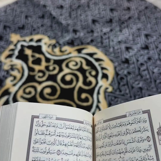 Keindahan reka bentuk itu bercampur dengan kemewahan sejadah premium warna hitam dan hiasan keemasan yang mencerminkan rekaan indah penutup dan dinding Kaabah Suci.