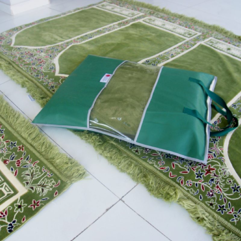 Set sejadah ini menggabungkan kegunaan dengan kecantikan, menawarkan pengalaman solat yang selesa dan bersatu untuk keluarga dan rakan anda.