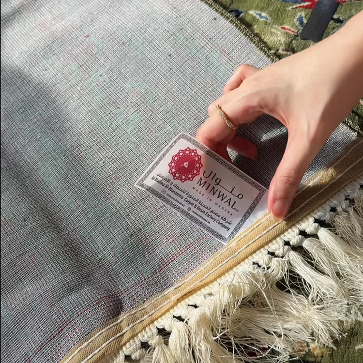 It is crafted atMinwal factory in Al-Madinah Al-Munawarah, specialized in carpets and Ihrams, using the finest threads with high precision.