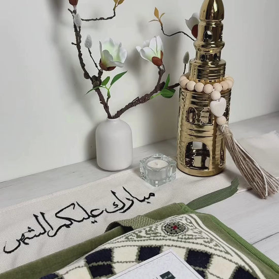 It comes with a stylish matching handbag, carefully crafted to add an extra touch of elegance. Lightweight and practical, the bag makes it easy to carry your mat to the mosque or while traveling, while keeping it clean and well-preserved. With its comfortable handle and modern design, the handbag completes the set perfectly, ideal for gifting or daily use.